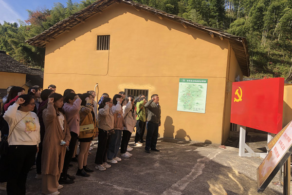 在宾山革命纪念馆,通过讲解员的解说和观看馆内展出的图片、实物,全体党员重温了那段烽火岁月,切身感受到革命战争年代共产党人和英模先烈舍身报国的坚定信念和不朽精神,领悟新四军的“铁军精神”。参观结束后,全体党员面对鲜红的中国共产党党旗,举起右手,握紧拳头,再次重温了入党誓词。