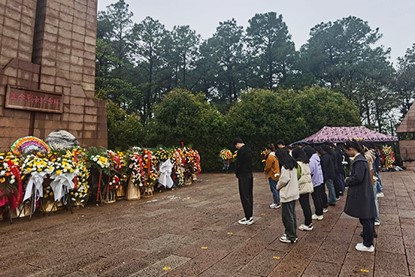 在烈士纪念碑前,全体党员师生肃立默哀,向革命先烈三鞠躬,并献上花束,以表达对先烈们的深深敬仰和无限缅怀。