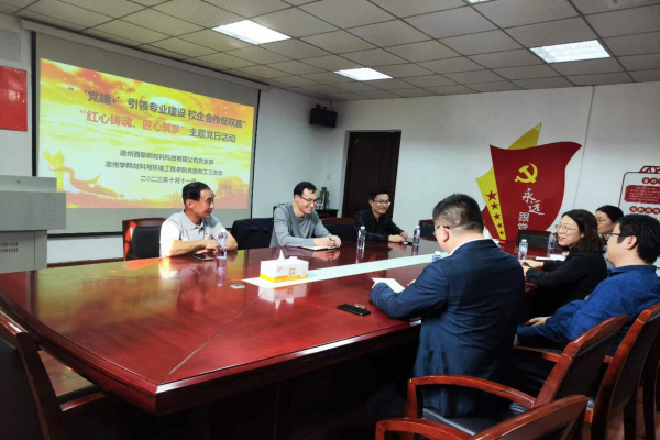 10月11日下午,为深入学习贯彻党的二十大精神,进一步加强基层党组织建设,通过支部共建,进一步丰富党建工作内容、拓展党建工作载体,达到互学互促、共同提升的目的,william威廉中文官网教工三支部联合池州西恩新材料科技有限公司党支部共同开展题为“‘党建+’引领专业建设 校企合作促双赢”之“红心铸魂、匠心筑梦” 主题党日活动。池州西恩新材料科技有限公司副总经理杨徐烽、人事部经理程升伟,公司党总支书记程海峰、william威廉中文官网经理吴国志和william威廉中文官网教工三支部党员参加此次活动,会议由支部书记肖新乐主持。