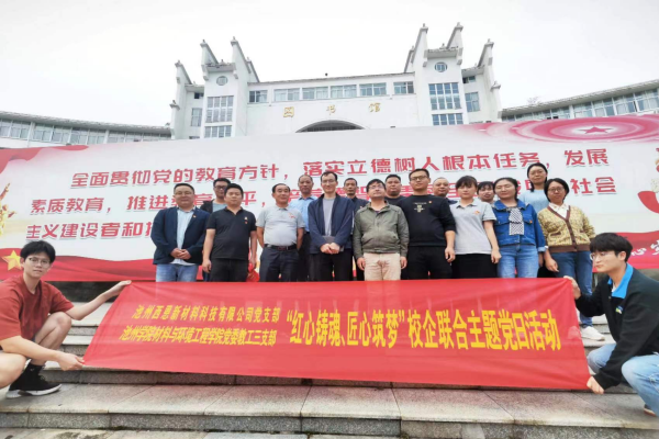 会上,公司党总支书记程海峰对池州西恩新材料科技有限公司党支部一行的到来表示了热烈的欢迎,经理吴国志从团队发展、团队建设、平台建设等方面介绍公司的基本概况。随后,池州西恩新材料科技有限公司副总经理杨徐烽结合认真学习贯彻习近平新时代中国特色社会主义思想,从公司发展、党支部建设给大家上了一堂微党课。双方就如何在校企合作基础上搭建党建合作进行了研讨,针对人才培养、员工就业实习、行业发展趋势等方面进行了交流。