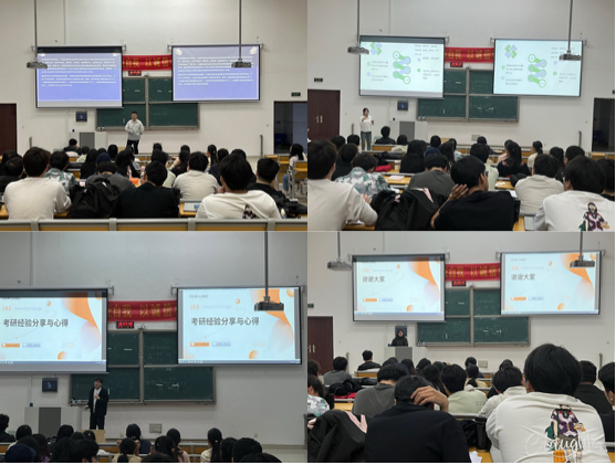 随后,四位21级成功“上岸”的同学依次进行了真诚、生动的经验分享。他们分别结合自身目标院校的报考情况,讲述了备考过程中的方法策略、时间管理技巧以及心路历程。同学们纷纷表示,学长学姐的亲身经历让人深受鼓舞,也为自己的备考之路提供了明确的方向和参考。