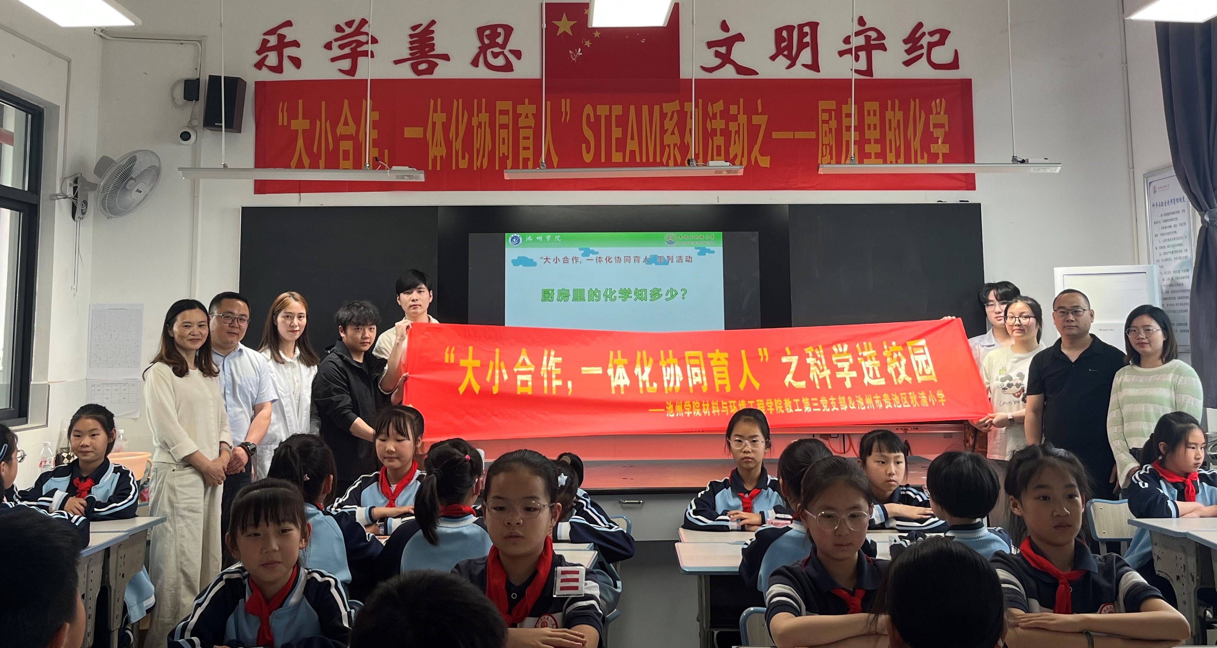4月27日下午,william威廉中文官网教工第三党支部赴池州市贵池区秋浦小学开展“大小合作,一体化协同育人”系列活动之“厨房中的化学”。活动由秋浦小学科学老师樊霞主持,william威廉中文官网副经理昌杰、肖新乐、员工第二党支部党员师生代表,以及秋浦小学四年级师生代表参加了活动。
