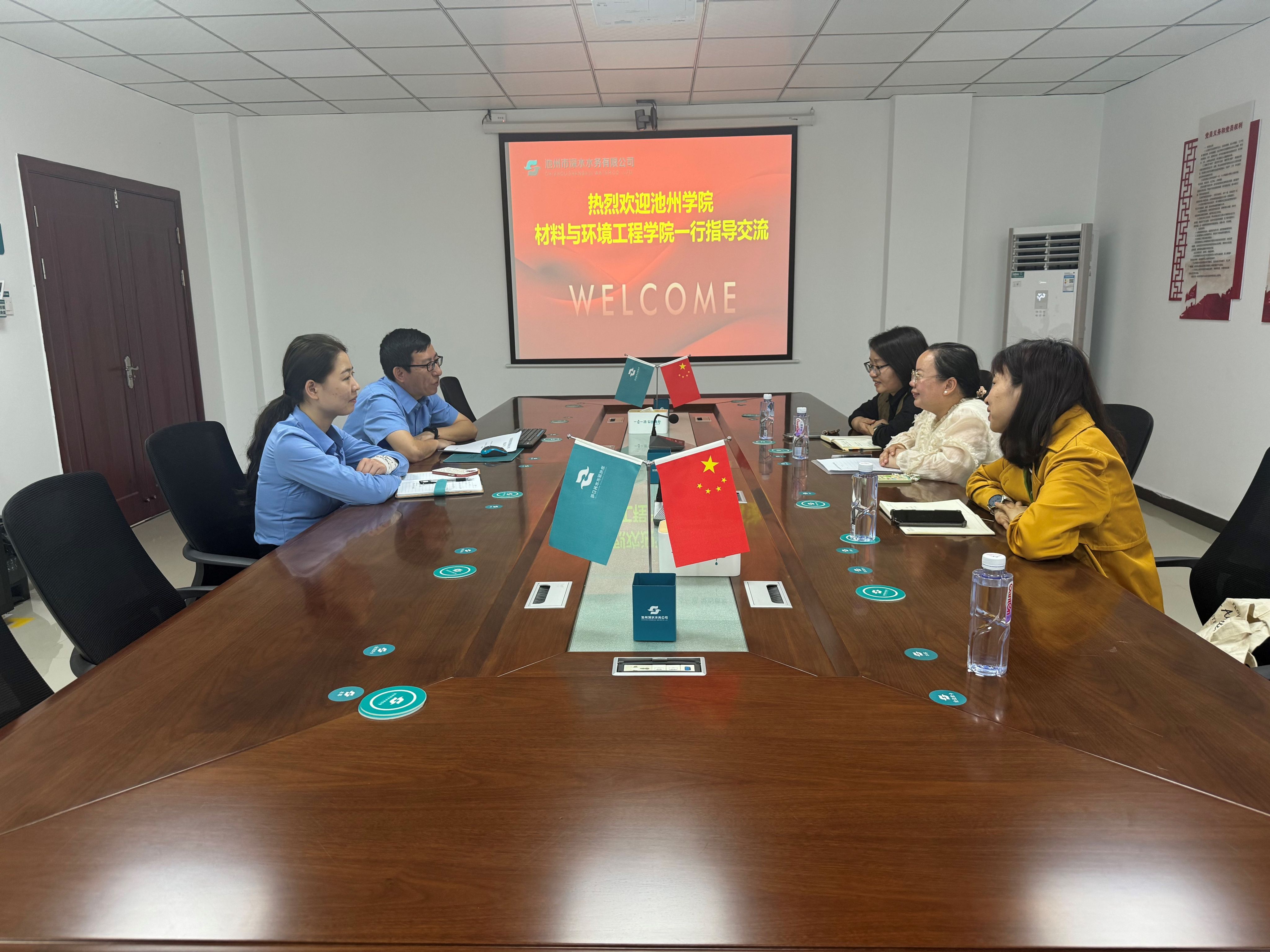 池州市深水水务有限公司常务副总经理蒋志国对公司教师的来访表示欢迎并介绍了公司发展历程。生产技术部部长吴浩介绍了污水处理工艺,厂区建设、运营情况及存在的问题,并带领参观污水处理厂。