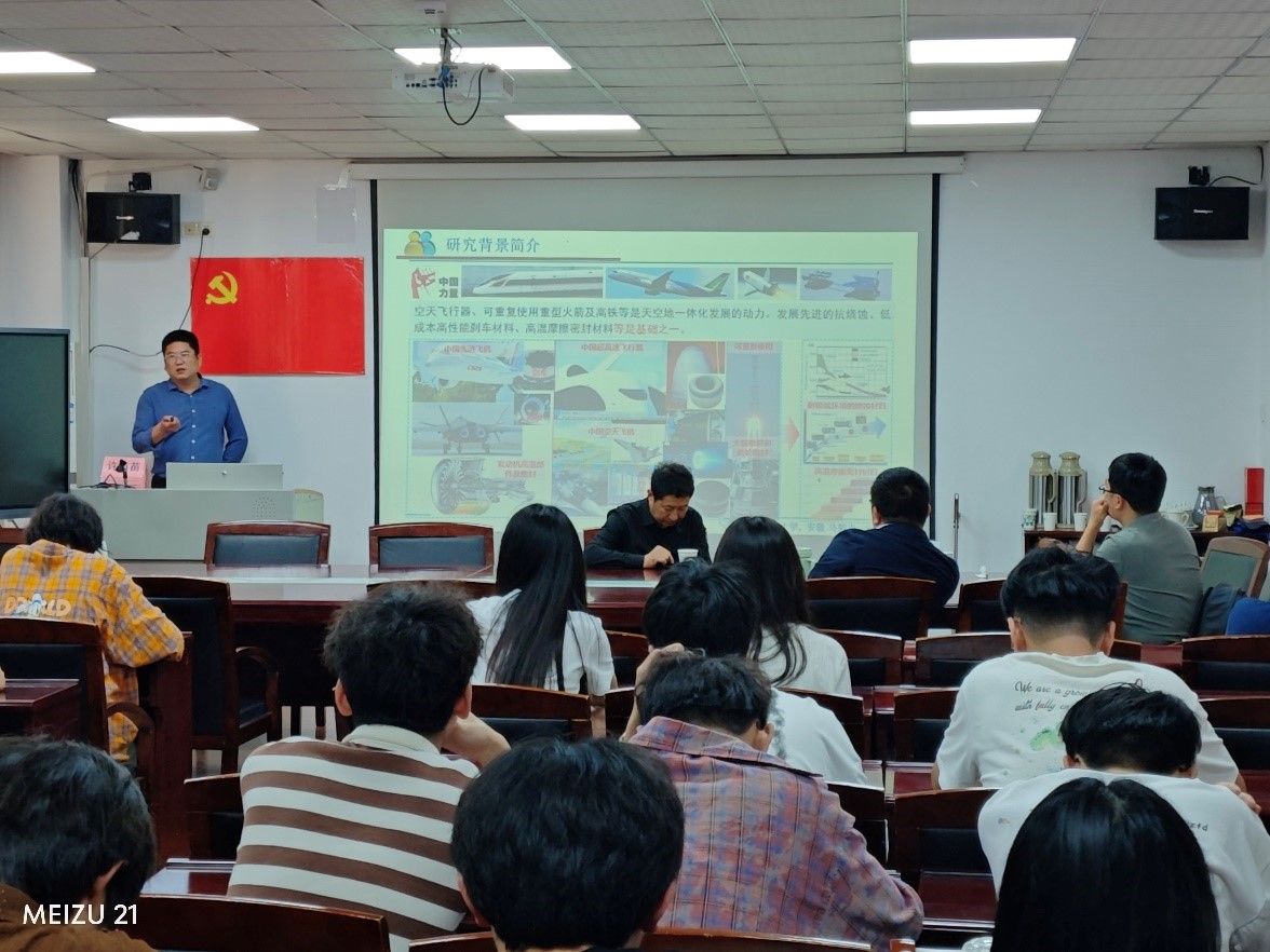 邓海亮教授深入浅出地介绍了C/C复合材料在航天领域的重大应用价值,并重点分享了其团队在“CeC₂纳米线增强C/C复合材料”方面的创新研究成果。展望了该材料在航天器热防护系统、推进部件等场景的应用前景。邓教授结合自身科研经历,鼓励师生立足国家战略需求,勇于探索材料科学的交叉前沿领域。