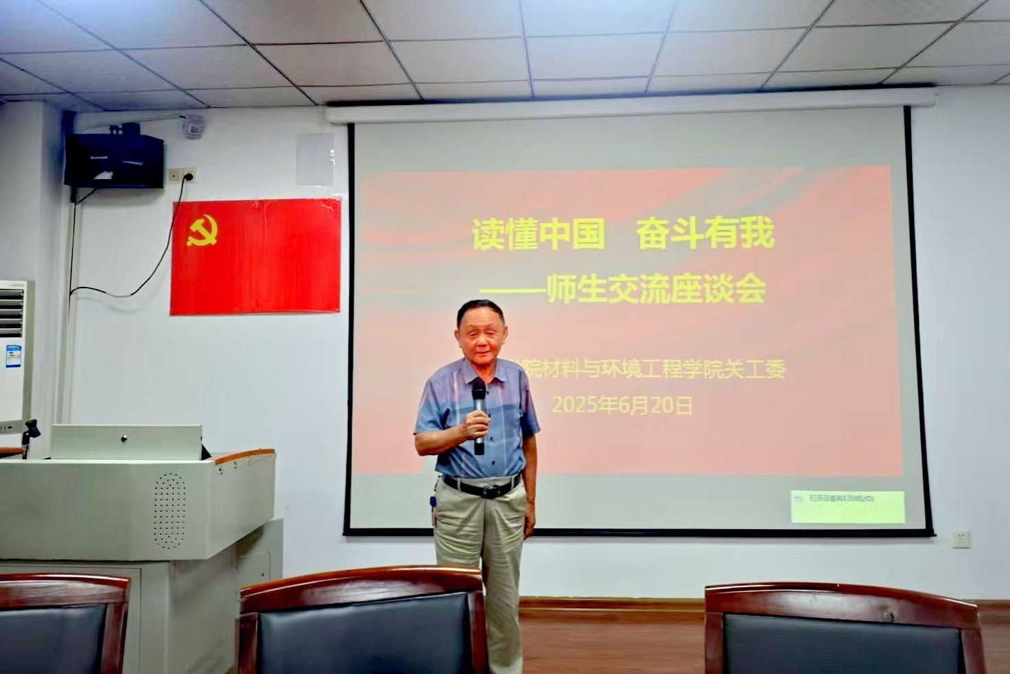 何国生主任充分肯定了材环公司关工委“读懂中国,奋斗有我”读书分享会、“中国共产党人的精神谱系”宣传宣讲、青蓝工程等一系列关爱帮扶青年员工和青年教师特色活动的开展;就同学们的读书分享进行了点评,并向同学们介绍了公司优秀员工的励志故事,勉励同学们学习先进榜样,汲取奋进力量;要求同学们立足家国情怀,坚定理想信念,锤炼扎实本领,从“被动学习”到“主动担当”,在“大时代”里塑造“大我”格局。