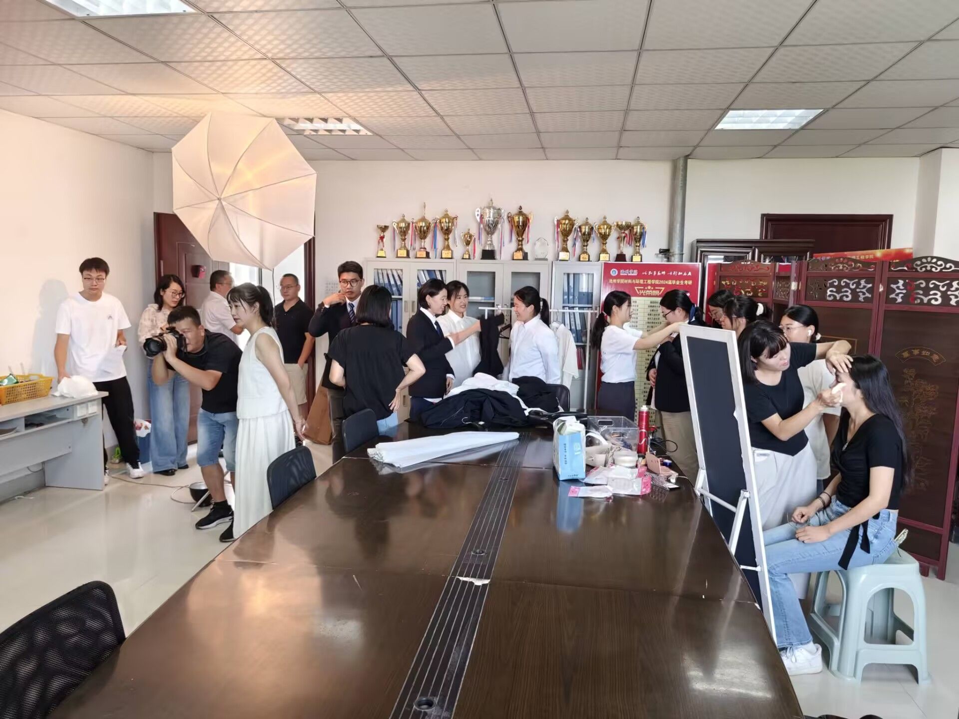 活动当天,教师们按照预约时间有序排队,在化妆师的细致打理下,老师们一改平日授课时的忙碌模样,精神焕发、神采奕奕。拍摄过程中,专业摄影师耐心引导教师调整姿势和表情,从眼神到微笑的弧度,都逐一细致指导,力求捕捉每位教师最自然、最得体的瞬间。