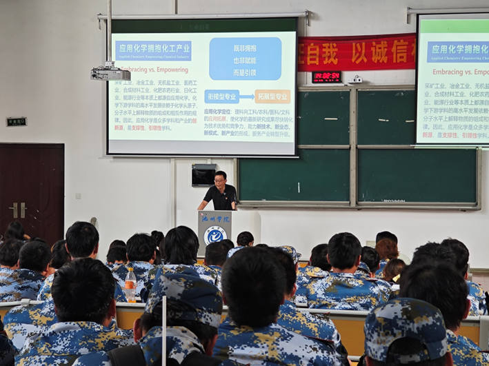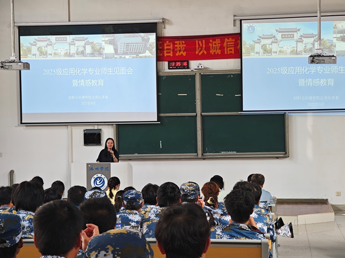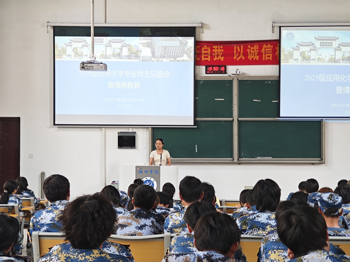 9月28日下午,2025级应用化学专业师生见面会暨情感教育活动在逸夫楼阶梯教室举办。2025级应用化学专业全体新生、公司党委副书记刘昉、员工洪梅以及应用化学系全体教师共同参会。