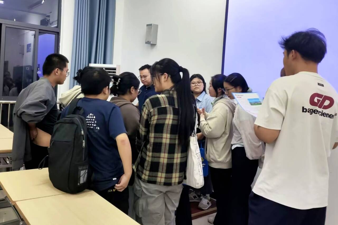 招聘会分别于当日下午在老员工活动中心、晚上在公共教学楼分两场开展,现场气氛热烈,桐城国轩人力资源程磊经理向同学们详细介绍了公司的创建历史、研发成果、发展前景、员工待遇和当地政策解读等,并从用人单位的角度指导同学们简历优化、面试技巧,就员工们关心的职业发展路径等问题进行了细致解答。