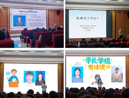 在“追光引路人”环节中,新能源材料与器件系的全体教师以及学长学姐代表依次登台亮相。他们送上真挚寄语,勉励新生尽快适应大学环境、勇敢追梦。