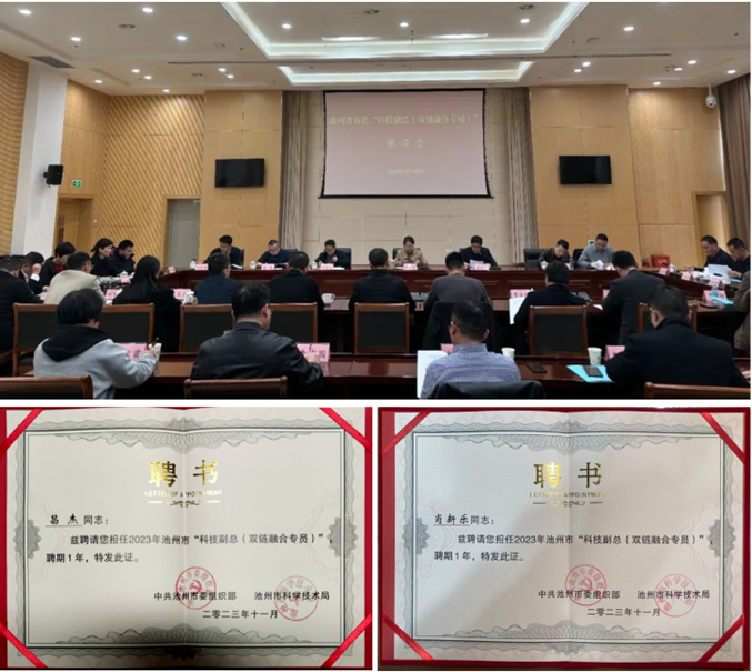 3月15日下午,公司昌杰和肖新乐两位教师参加池州市首批“科技副总(双链融合专员)”座谈会,市委组织部、市科技局相关负责人,来自中南大学、上海大学、合肥工业大学等省内外高校的“科技副总”及部分派驻企业代表参加会议。