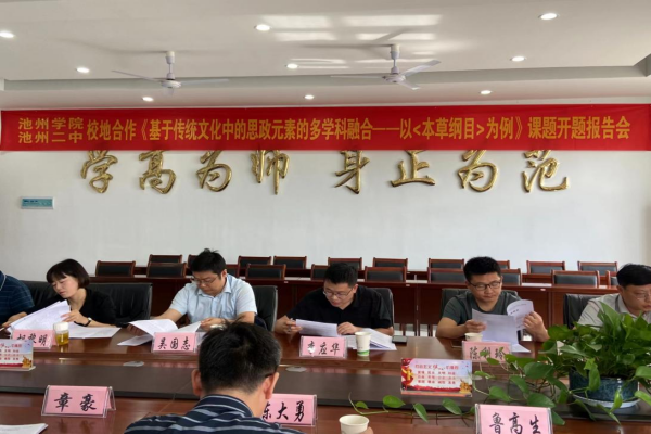 2023年6月28日上午,WilliamHill中文官方网站与池州市第二中公司地合作项目课题《基于传统文化中的思政元素的多学科融合——以〈本草纲目〉为例》课题开题报告会在市第二中学田家炳楼会议室顺利举行。william威廉中文官网经理吴国志、WilliamHill中文官方网站教务处教研科李应华科长及william威廉中文官网陈大勇教授参加会议。