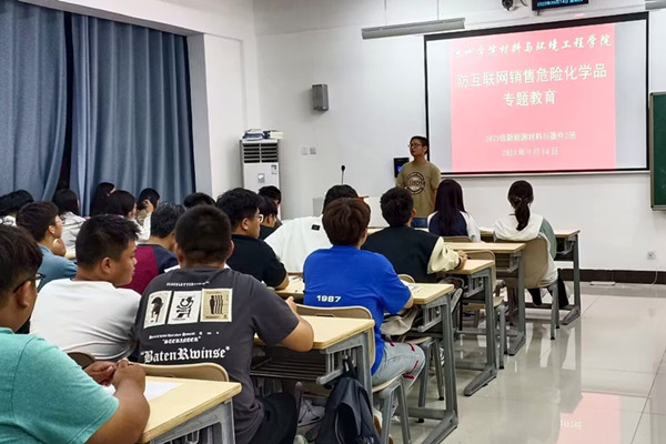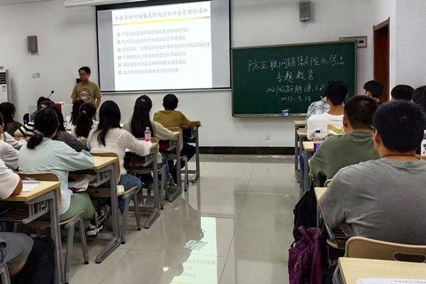 各班级在辅导员的带领下纷纷召开主题班会,就《危险化学品安全管理条例》、《危险化学品分类信息表》及《关于加强互联网销售危险化学品安全管理的通知》等文件等进行深入学习。播放了危险化学品安全教育视频,围绕危化品的分类、危险化学品的危害、危化品的储存与管理、危化品应急处理、使用危化品时的个人防护等方面进行问答探讨。辅导员助理对常见的具有易燃易爆、有毒有害、腐蚀放射性的危险化学品进行归类列举,帮助同学们学会区分和安全使用危险化学品。公司党委副书记刘昉参加了部分班级的主题班会,强调个人不得在互联网上发布危险化学品销售信息、不得通过互联网购买剧毒化学品和易制爆危险化学品等禁止性行为;要求同学们要高度重视危化品安全使用的重要性,主动积极学习相关危化品管理与使用知识,增强危化品操作的规范意识,掌握一定的危化品突发事件应急处置方法,严密防控各环节安全风险。