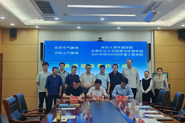 在公司领导的支持和帮助下,9月22日,公司环境工程教研室主任傅妍芳老师一行与南京大学环境公司、安徽农业大学资源与环境公司老师共同赴安庆市气象局、天柱山气象局开展华东高山大气综合观测实验,并签订试验合作协议。