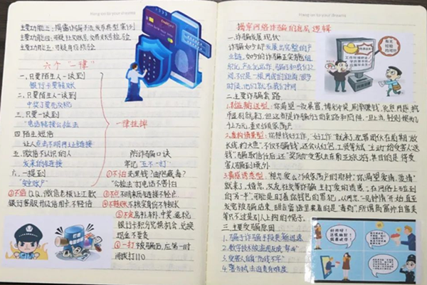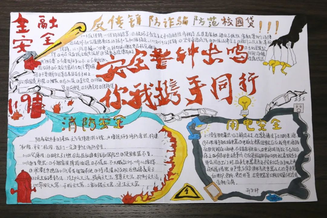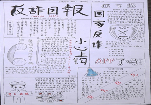 为丰富反诈活动形式,在公司学工办副主任魏晓娇老师的指导下,公司易班分站特别承办“反诈防骗”手抄报设计评比活动。同学们积极踊跃,描绘的手抄报主题明确、设计新颖、图文并茂。获奖员工钱贝尔认为,手抄报设计评比活动的开展,使新生进一步了解了各种诈骗手段和危害,实现了员工由被动接受宣传向主动担负反诈宣传任务的转变,构筑起员工团体坚实的思想防线。