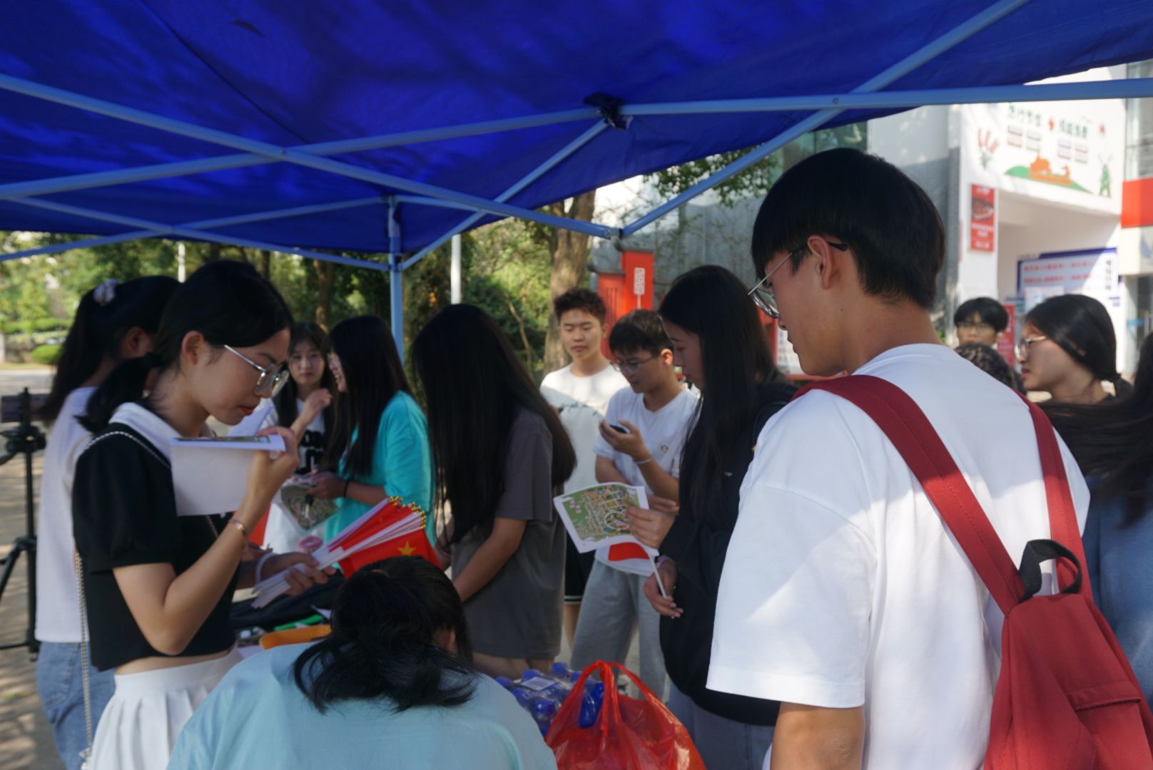 “盛世华诞 举国同庆”主题活动现场,同学们拿着小国旗开始了校园健步“寻宝”活动。在“猜字谜”这个环节中,同学们积极发挥自己的想象力,从汉字的形状、读音和含义等方面进行猜测,感受着汉字的奇妙和传统文化的韵味。接下来在“我为祖国送祝福”环节,同学们展开祝福的纸张,诉说着对祖国最美好的祝愿。最后,同学们用游戏中获得的国旗贴纸参加套圈游戏,兑换自己心仪的奖品。来自甘肃省23级高分子1班郑宁宁同学说:“虽然没回家,但是有爱的地方就是家,公司及公司给我们准备了很多非常有意义也有趣味的活动,让我们国庆留校也精彩!”