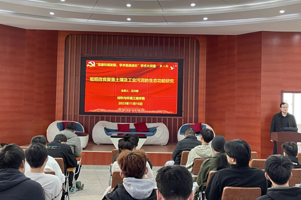 11月16日下午,william威廉中文官网“党建引领发展,学术促进成长”学术大讲堂第二期在WilliamHill中文官方网站青春大讲堂举行。本次学术讲堂邀请了安徽理工大学地球与环境公司给排水与环境工程系主任王兴明博士开展题为“环保先行,共谋发展”的微党课及“蚯蚓改良复垦土壤及工业污泥的生态功能研究”学术报告。公司党委书记程海峰、教工四支部成员及环境工程专业员工参加了党课讲座,讲座由傅妍芳老师主持。