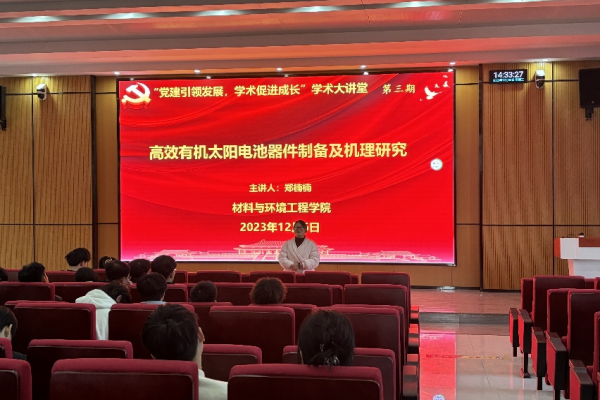 12月6日下午,william威廉中文官网“党建引领发展,学术促进成长”学术大讲堂第三期在新教学楼东报告厅开讲。公司教师郑楠楠 开展题为“奋斗人生最精彩”的微党课及“高效有机太阳电池器件制备及机理研究”学术报告,全校100多位员工参加了此报告。