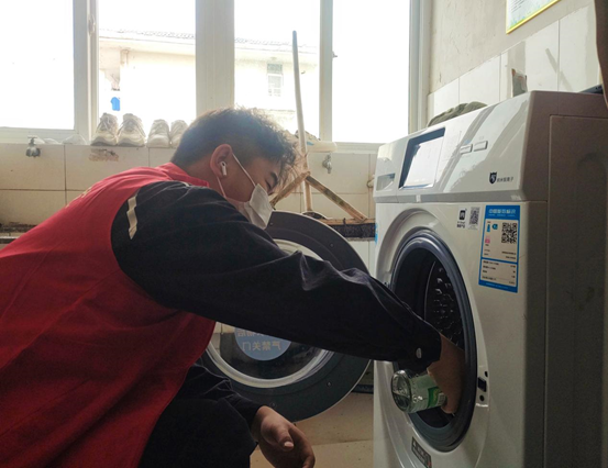 根据志愿服务队前期调研,志愿者进行了分组:公共洗衣机清洗组、宿舍空调滤网清洁组、公共区域清理组、公共厕所清洁组。志愿者们来到员工宿舍分工明确,默契搭配,为同学们解决了宿舍设施和公共卫生的清洁问题。