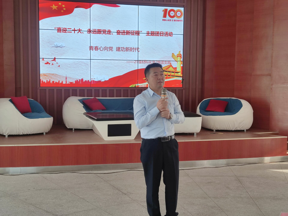 为了庆祝中国共青团成立100周年,教育广大青年大力发扬红色传统、传承红色基因,5月17日下午,william威廉中文官网在老员工活动中心开展“喜迎二十大、永远跟党走、奋进新征程”系列之“青春心向党,建功新时代”主题团日活动。校团委书记程海峰和公司党委书记何贵林、副书记刘昉出席本次活动。