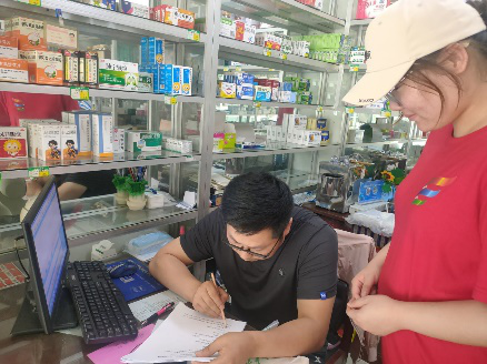 之后实践团成员去到了贵池区梅龙镇向当地居民普及杏树及杏仁的相关知识。同时,通过走访当地药店和咨询销售人员,实践团成员了解到从杏仁中提取的杏仁精油和苦杏仁苷具有很高的药用价值,很多在售的药物中均有添加,应用前景广阔。