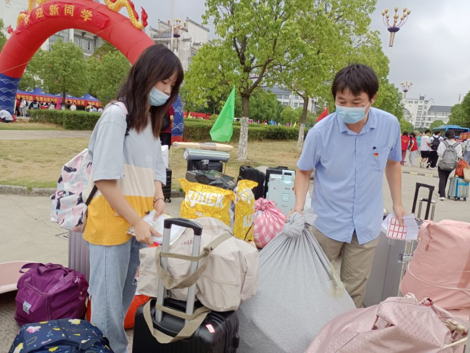新生报到当日,党员志愿者和迎新工作志愿者一起核验新生身份,校验安康码、行程码等,帮助新生搬运行李,指引新生办理入学登记,有教师党员还用私家车协助员工行李运送。