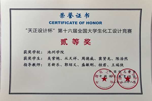 日前,由中国化工学会、中国化工教育协会主办、湖北工业大学承办的2022年“天正设计杯”第十六届全国老员工化工设计竞赛在湖北武汉举行,公司学子的一项参赛作品荣获全国二等奖的好成绩。