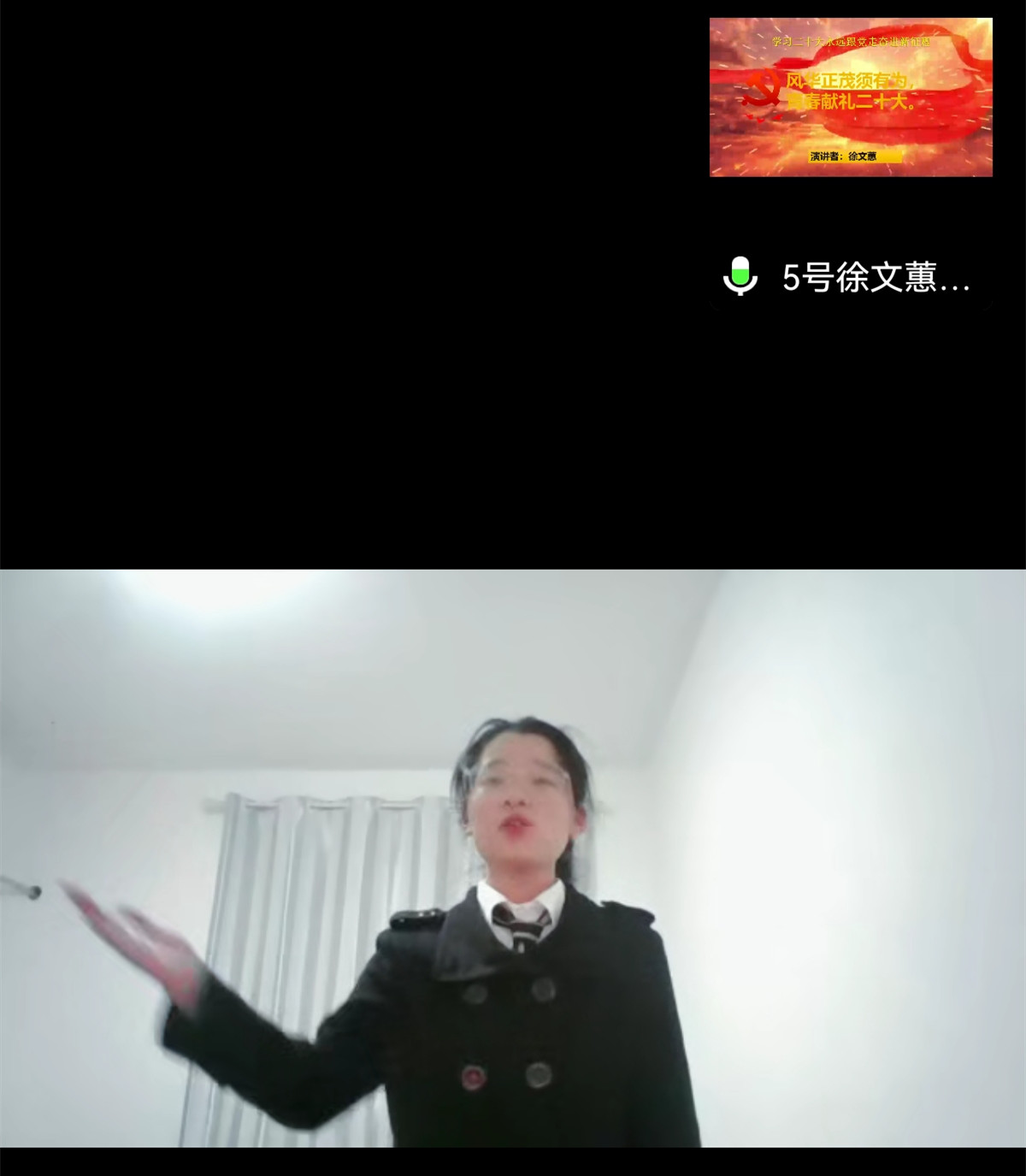 参赛选手紧紧围绕二十大报告主题主线,以饱满的激情和昂扬的斗志,用铿锵有力的语言、真挚热烈的情感,结合自己学习和生活经历,畅谈学习感悟和体会,充分展现青年学子奋发向上的青春活力与风采,表达了对祖国的热爱和坚定不移跟党走的信念。经过激烈角逐,2022级环境工程2班徐文惠获得一等奖;2022级应用化学1班李思宇和2022级高分子材料与工程1班王伟获得获得二等奖,2022级高分子材料与工程2班汪睿、2022级环境工程2班邹正方和2022级环境工程2班张曼悦获得三等奖。