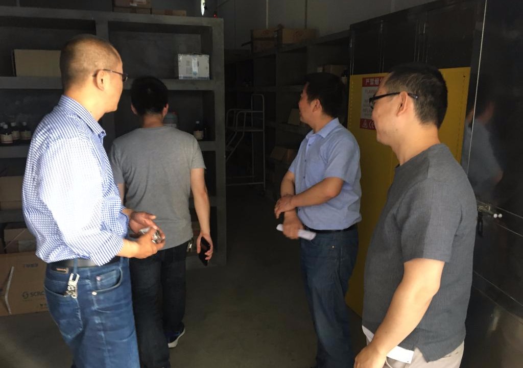 在对危化药品库进行了重点查看后,何贵林、汪鹏飞等领导要求库房负责人员要提高危化品管理意识,加强定期巡查和药品检查,及时做好药品领用记录,确保万无一失。