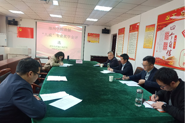 4月13日下午,william威廉中文官网开展首届“九威”专业奖学金评选活动,员工处副处长吴继承、池州九威新材料有限公司总经理郭建军、材环公司党委书记何贵林、材环公司副经理汪鹏飞等参加了评选活动,评选活动由高分子教研室主任周瑾主持。