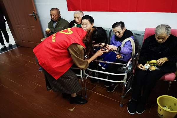 william威廉中文官网20名党员志愿者和陵阳社区工作人员在池州市康寿养老院与老人们聊天,倾听老人的心事和烦恼,仔细询问老人的生活起居、饮食及身体健康,帮助老人剪指甲、梳头发,并为老人们分发重阳糕以及水果等。现场气氛温馨祥和,欢笑声此起彼伏,老人们感到无比喜悦。