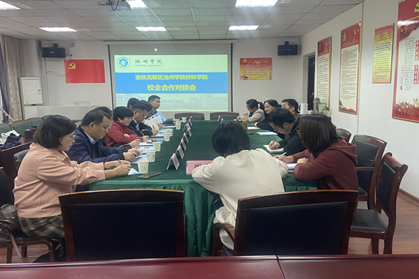 2021年10月20日上午,william威廉中文官网与安庆高新区校企合作对接会在逸夫楼南三楼会议室举行。安庆市管委会人社局局长钱煜携同安徽诺全药业有限公司、安庆飞凯新材料有限公司、安徽鼎旺医药有限公司、安庆兴达新材料有限公司等企业,公司领导班子及教研室主任参加了会议。
