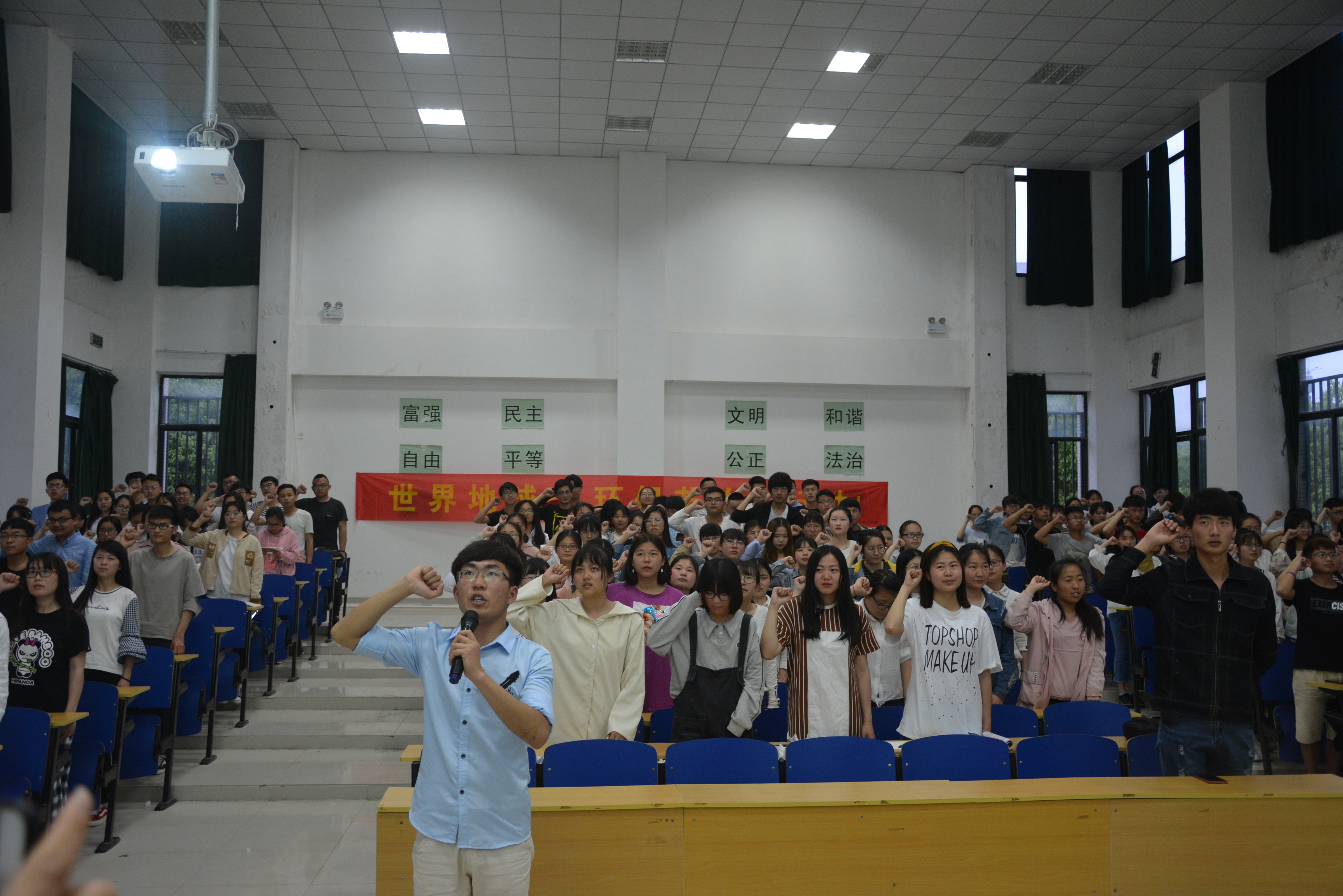 首先由主持人张峰为大家讲解地球日的存在来源及意义,并向同学们介绍了现今全球面临的主要环境问题,例如全球气温变暖、臭氧层的耗损与破坏、生物多样性减少等;随后与同学们共同讨论保护地球的方法,号召同学们从自身出发,从选购绿色食品、选无磷洗衣粉、买可充电电池等小事做起,保护我们的地球母亲。最后同学们共同宣誓,誓以保护地球母亲为己任,以绿色环保为宗旨,共同努力。