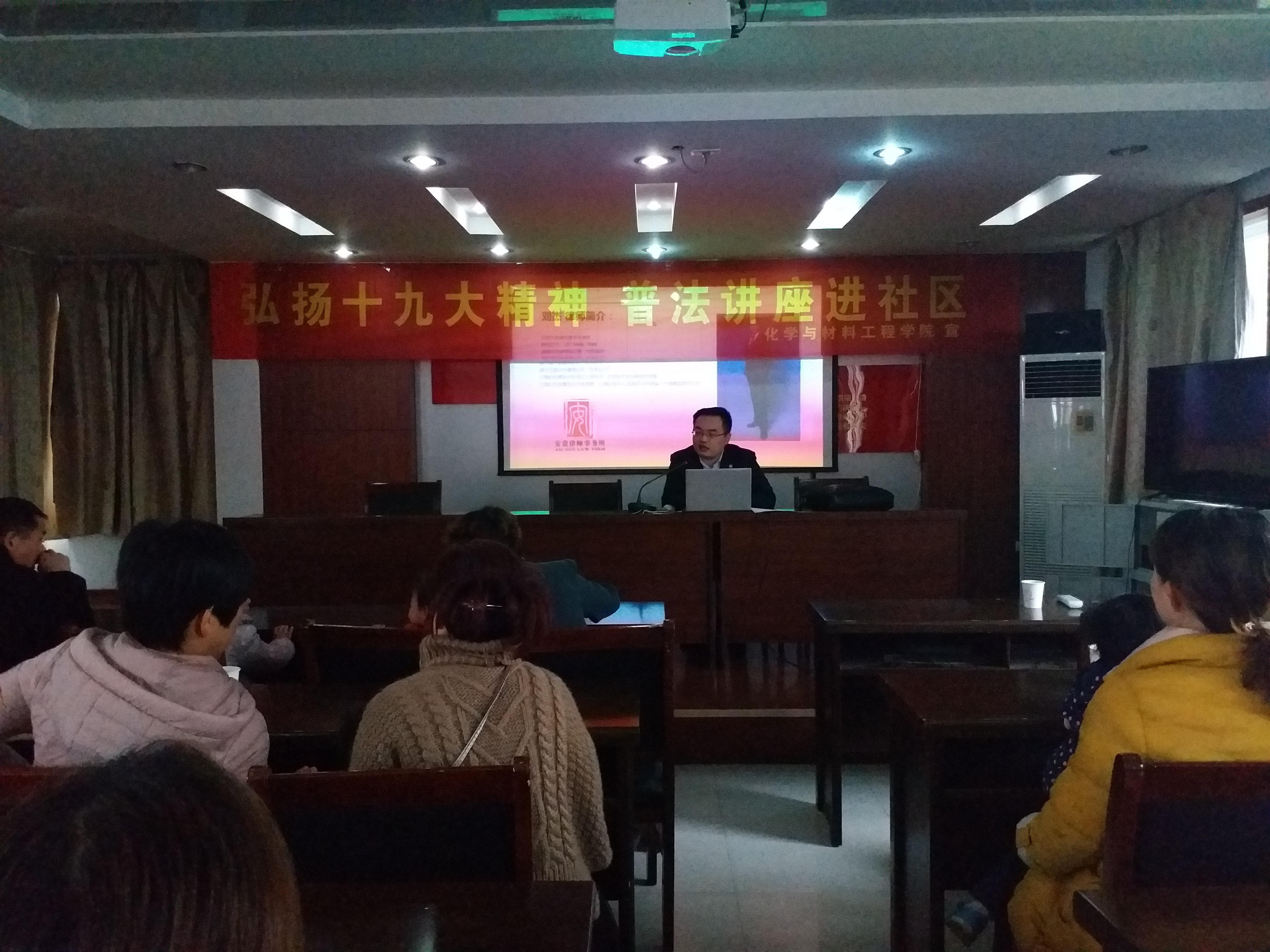 首先由安贵律师事务所刘杰律师为社区居民普及法律纠纷知识之房产产权问题,通过案例分析让居民们懂得用法律常识维护自身权益,大家都认真聆听、提问并记下要点。随后公司志愿者开启有奖互动环节,社区居民积极参与法律知识竞答,现场气氛活跃。