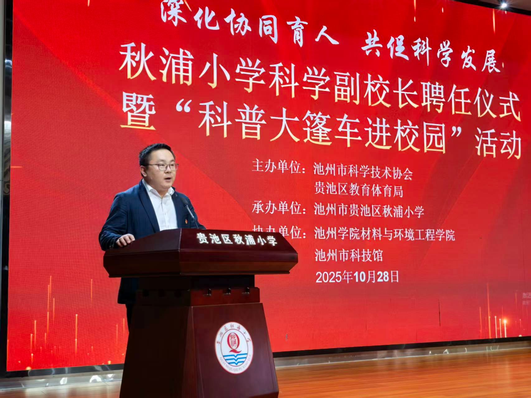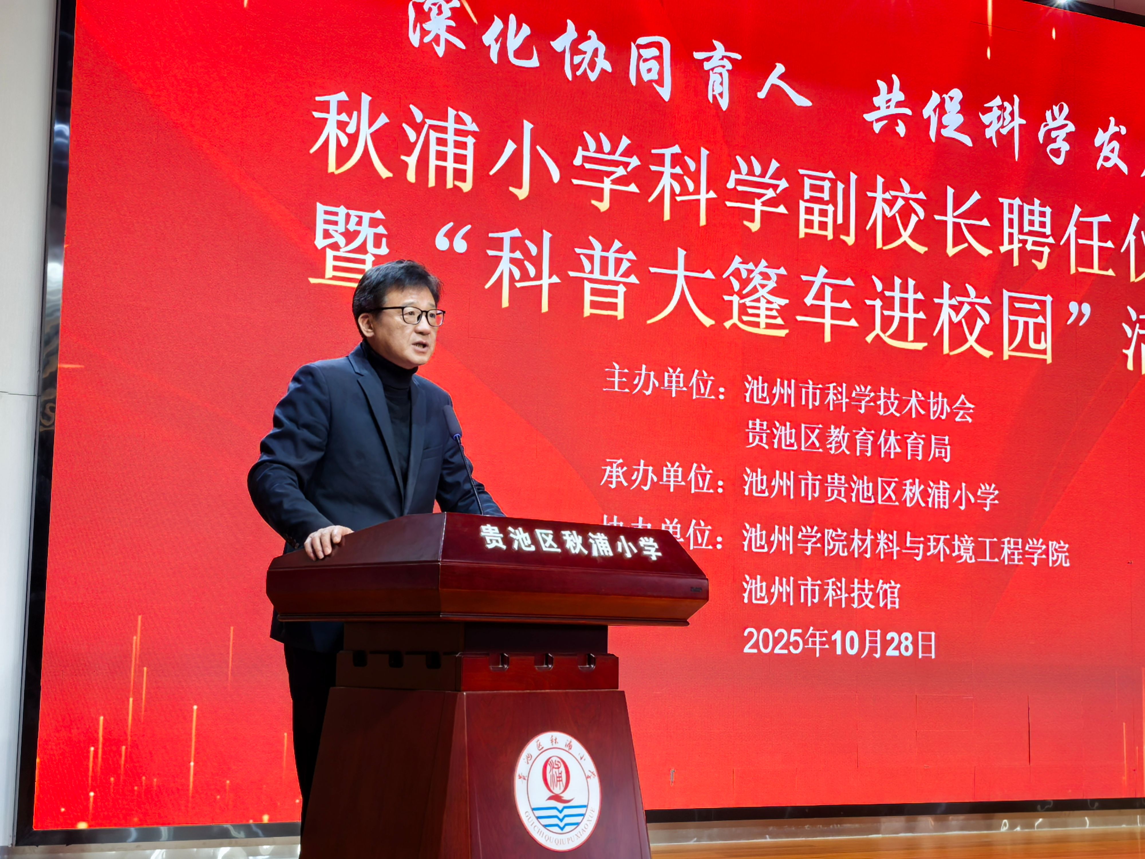 池州市科学技术协会主席徐启明在讲话中,对秋浦小学高度重视科学教育、积极探索协同育人模式的做法给予了高度赞扬。他表示,市科协将一如既往地全力支持公司开展各类科普活动,推动优质科普资源源源不断地走进校园,为提升青少年科学素养贡献更多的智慧和力量。