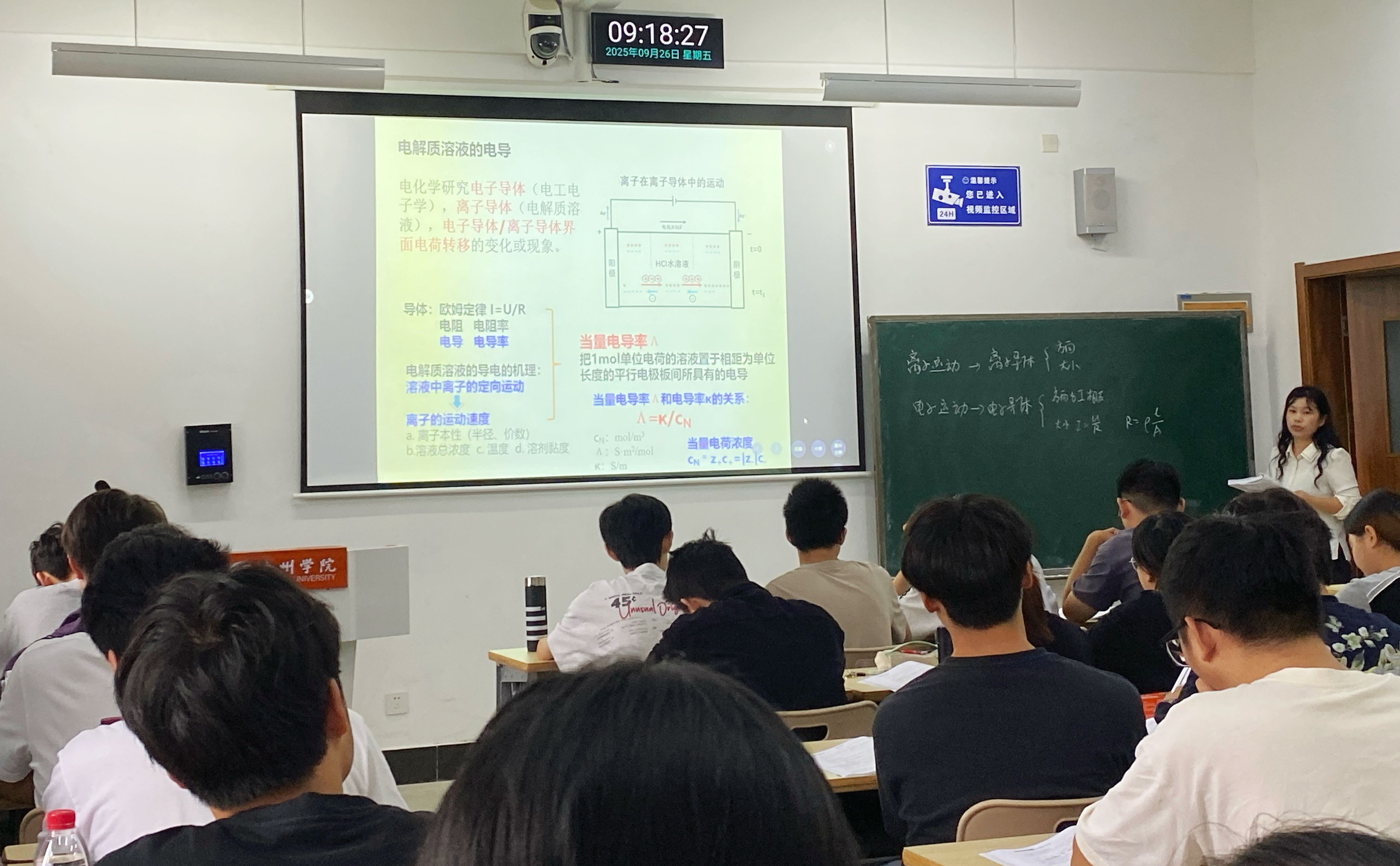 9月26日上午,william威廉中文官网青年教师甘杰在公教南311教室开展《电化学原理》示范公开课。本次公开课围绕“电化学体系”主题进行教学展示,旨在促进教学交流,助力青年教师成长。