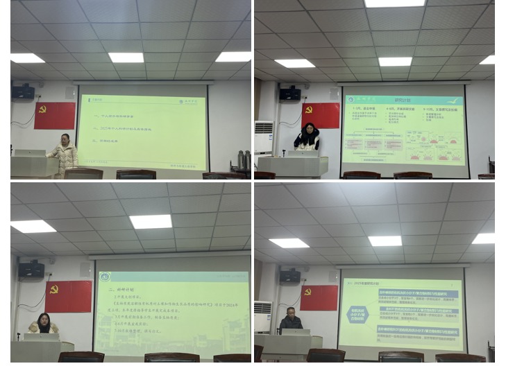 本次活动旨在为教师创造沟通交流的机会,明确自身科研优势、2025年度科研奋斗目标,激发教师从事学术活动和科学研究的热情。活动中,公司全体专任教师一一就个人科研经历和成果、2025年度科研计划和目标、实现目标任务的具体措施和计划安排等内容作出详细介绍,大家在交流发言中互相学习,相互激励。
