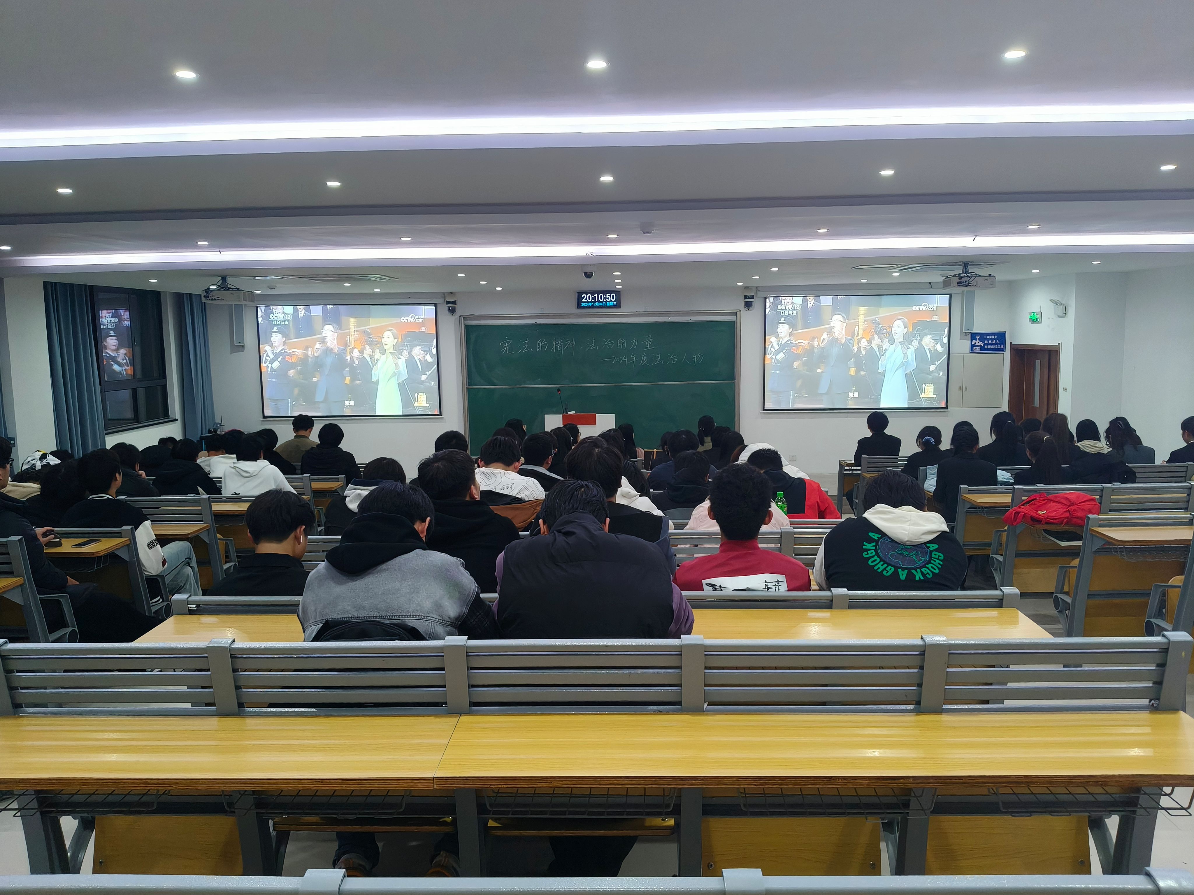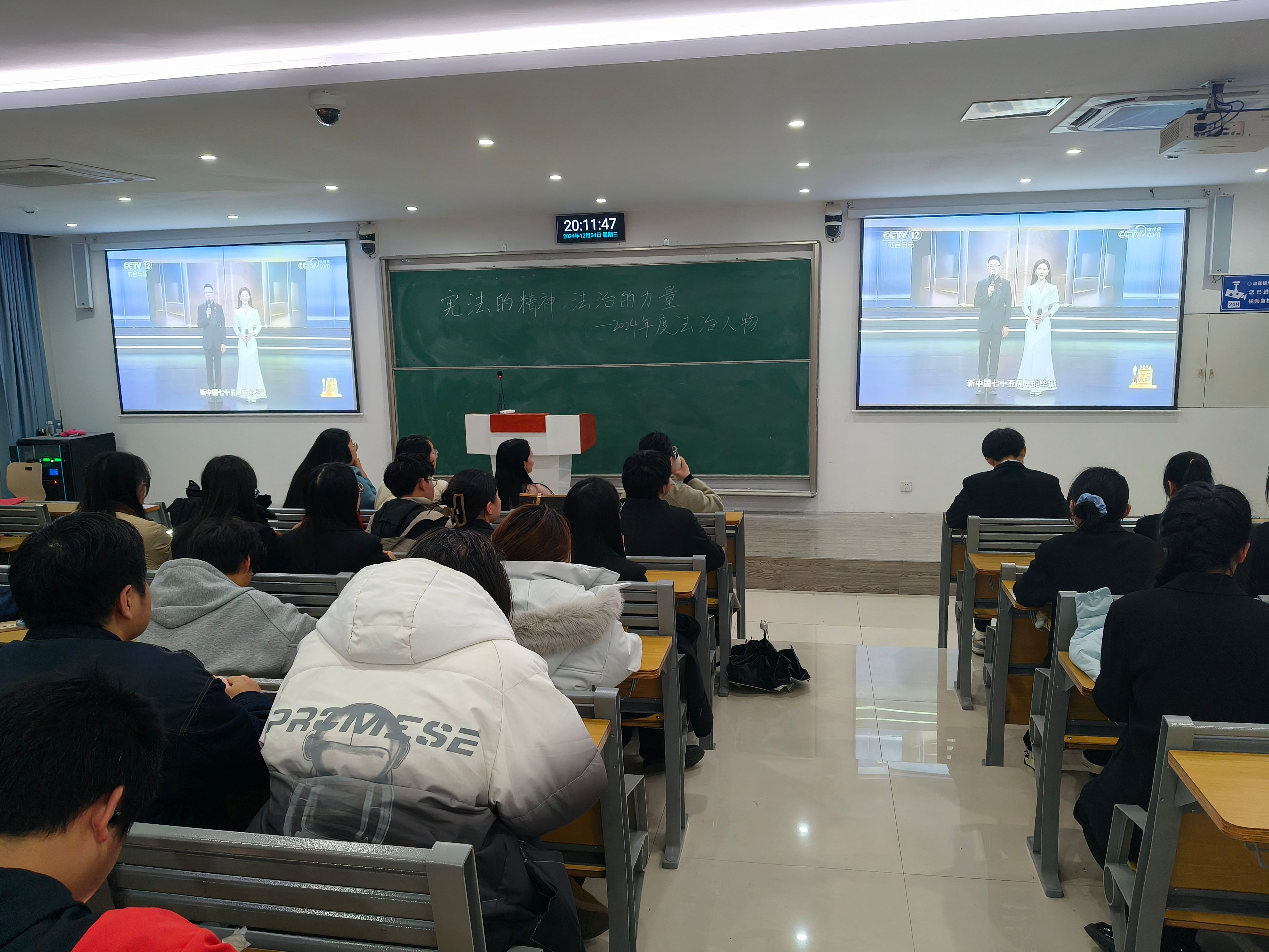 今年12月4日是第11个“国家宪法日”。由中央依法治国办、司法部、全国普法办和中央广播电视总台共同主办的“宪法的精神 法治的力量”专题节目采用视频短片、纪实图片、现场访谈、多媒体剧等艺术形式,由现场主讲人讲述每位“年度法治人物”生动鲜活的法治实践和“致敬英雄”英勇感人的典型事迹,展现他们在法治战线的坚守和付出,让社会公众感受到他们的崇高精神,讲好新时代中国法治故事,展现我国年度法治建设的突出成就。同学们纷纷表示受益剖深,感人肺腑。