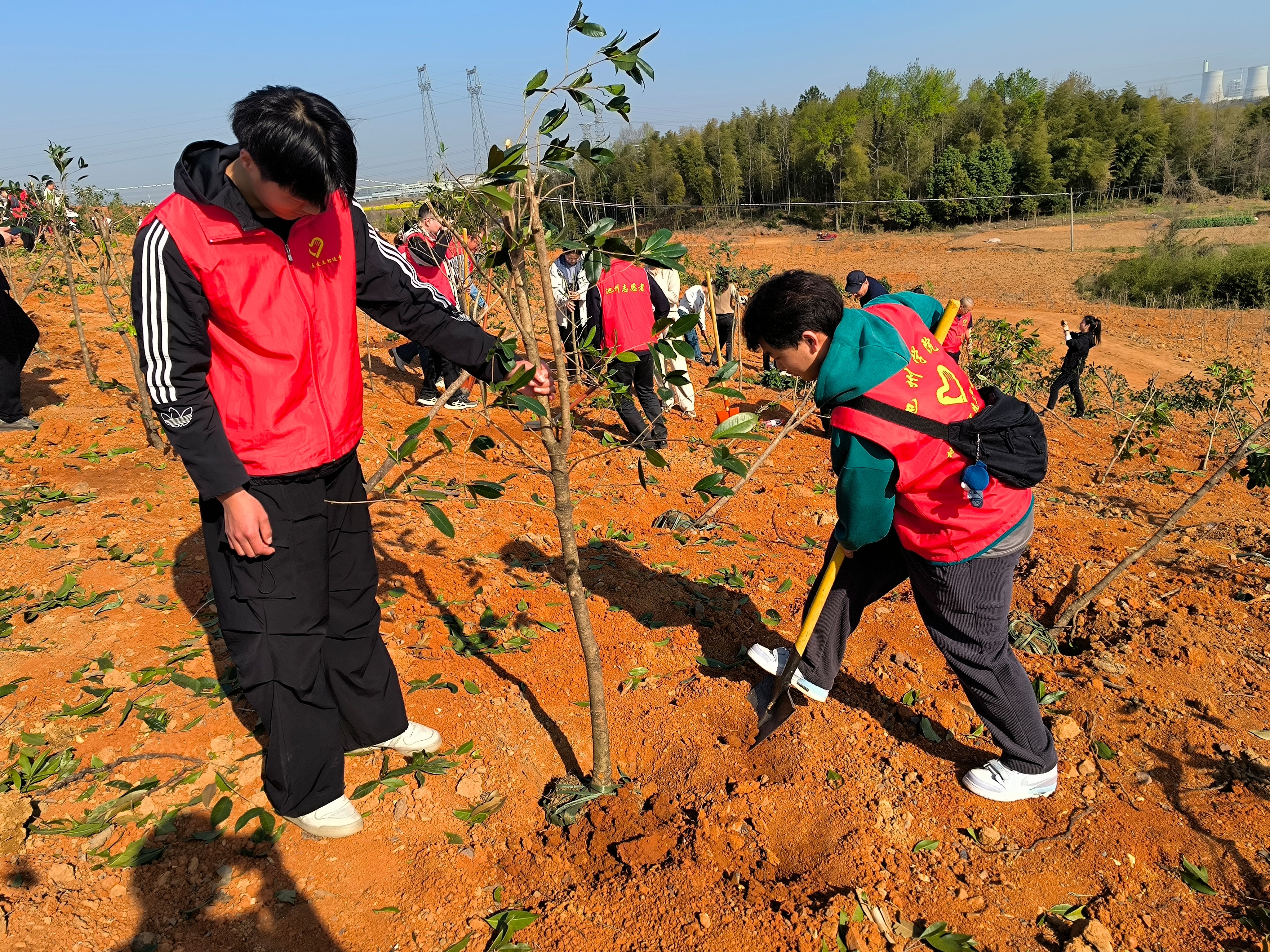 在贵池区江口街道查村社区安冲,志愿者们热情高涨,干劲十足。在池州市林业局技术人员的专业指导下,志愿者严格按照植树规范操作。大家挥锹铲土、扶苗填坑、培土浇水,每道工序都做得认真细致。经过一番忙碌,30余株桂花树苗错落有致、迎风挺立,在和煦的阳光中展现出蓬勃生机。志愿者郭轲禹一边擦汗一边说:“虽然手上磨出了水泡,但想到这些小树苗将来能长成参天大树,就觉得特别有意义。”