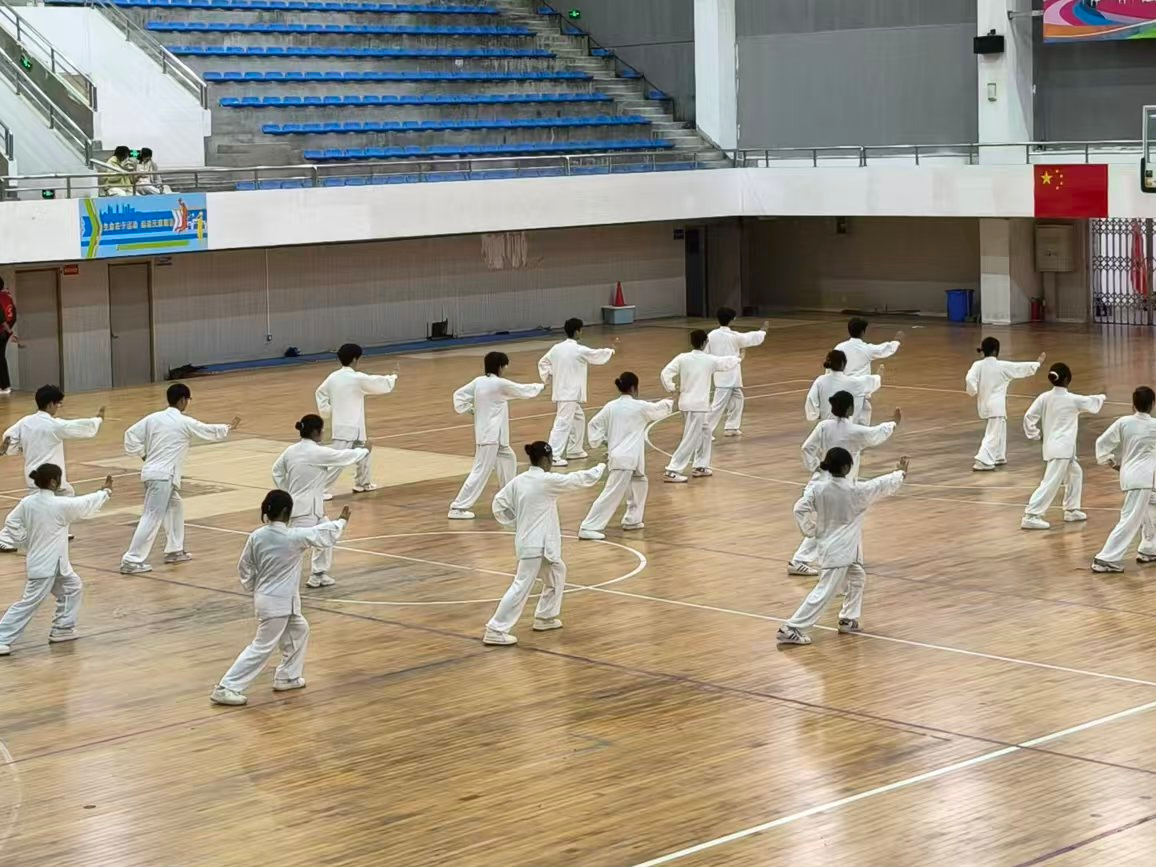 比赛当日,队员们身着统一服装,伴随悠扬的传统音乐翩然起势。他们的动作刚柔相济、行云流水,一招一式间既体现了太极拳的深厚底蕴,又融入了团队的创新演绎。流畅的衔接与饱满的精神状态赢得了现场评委和观众的一致好评,成为赛场上一道亮丽的风景线。