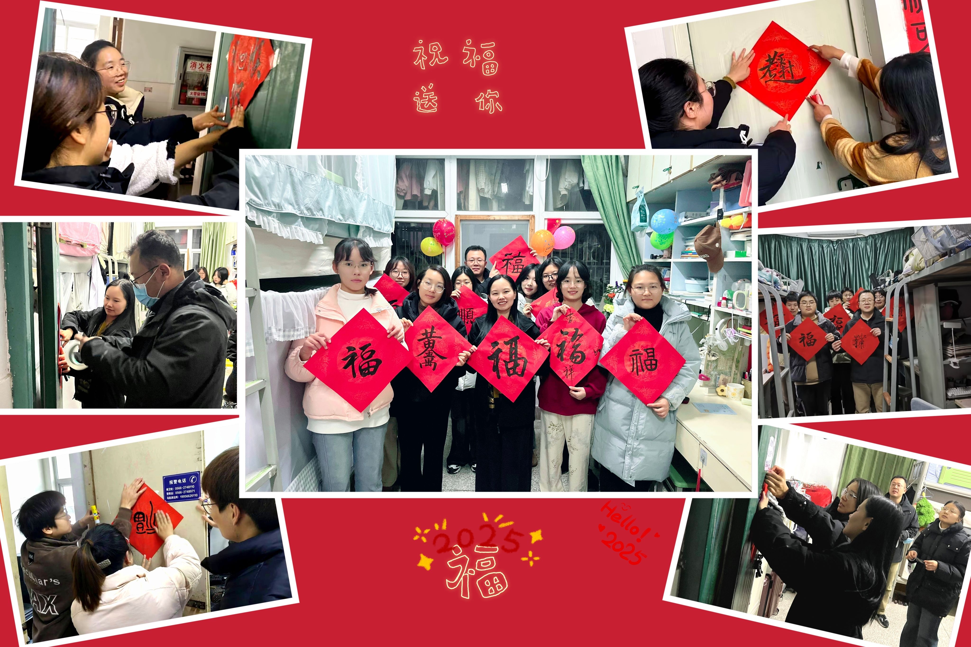 刘昉带领辅导员们在一个个员工宿舍门上,张贴着一张张公司志愿者们爱心书写的“福”字,并亲切与员工们交流,详细询问同学们的学习和生活情况,以及遇到的困难和需求;鼓励同学们在新的一年里,与书相伴、与勤相随,不断汲取智慧和力量。同时,刘昉一行还仔细查看了员工的住宿条件,对寝室的安全和卫生等方面进行了检查,叮嘱员工要保持良好的生活习惯,合理安排作息时间,认真复习,以良好的心态迎接期末考试。