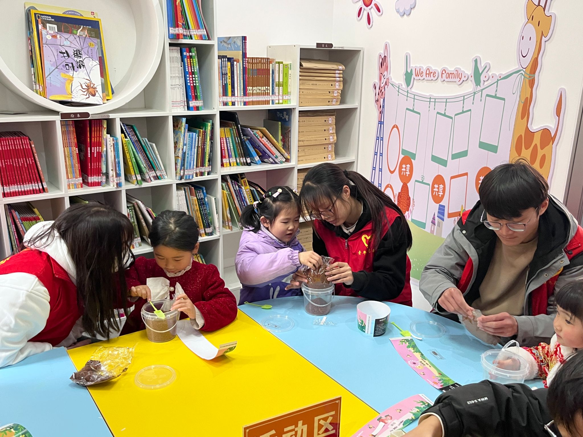 志愿者们陪伴在小朋友们左右,耐心辅助他们进行小盆栽的种植以及用树叶制作出生动精美的图画。活动过程中充分展现和培养了小朋友们的创造力与观察力,让他们进一步发现大自然的美丽。接着志愿者通过主题课堂的方式向小朋友们介绍大自然中不同绿植的习性以及养护知识,告诉小朋友们爱绿护绿的重要性,激发他们探索亲近自然的兴趣。