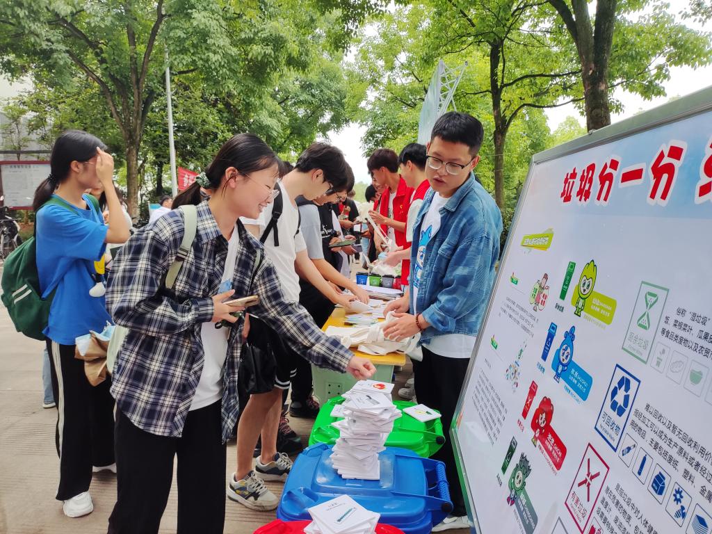 本次宣传活动通过发放环保知识宣传单、环保纪念品、科普生态环境保护知识、解答员工现场提问,引导员工到签名墙处签名等方式,向同学们宣传生活垃圾分类知识,同时,公司环境工程专业傅妍芳老师和池州市城市管理行政执法局相关工作人员还在现场开展垃圾分类现场教学,引导员工将“垃圾”卡片放到对应“垃圾桶”,在游戏中开展垃圾分类教育,鼓励同学们从自身做起,从身边小事做起,践行简约适度、绿色低碳生产生活方式。