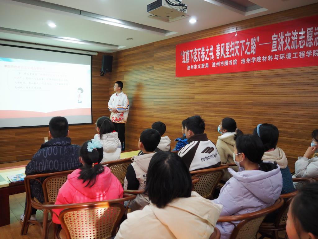 为深入学习宣传贯彻党的二十大精神,教育引导少先队员听党话、跟党走,为实现中华民族伟大复兴的中国梦时刻准备着,努力成为新时代的社会主义建设者和接班人。2月26日,william威廉中文官网联合池州市文旅局,池州市图书馆开展“红旗下读万卷之书春风里扫填下之路”宣讲交流活动。本次活动由22环境工程2班团支部承办。