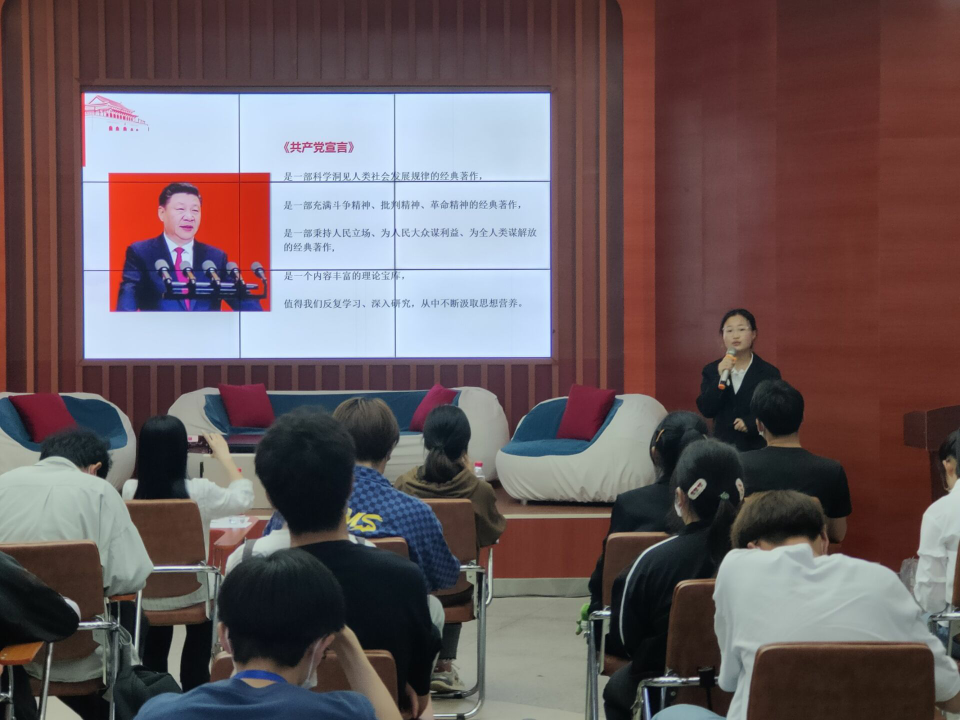 活动现场,同学们互相分享读书心得、交流阅读感受、感悟智慧启迪。8位员工代表上台分别推荐了自己所阅读的《共产党宣言》《红岩》《活着》《平凡的世界》等优秀文学作品,并以诵读、鉴赏等方式结合自身经历分享阅读陪伴成长的故事。