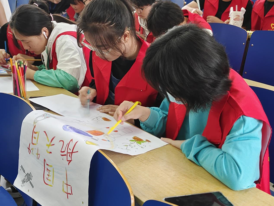 同学们在一起观看中国航天纪录片、神舟十三号返回地面视频,深刻感悟“特别能吃苦,特别能战斗,特别能攻关,特别能奉献”的载人航天精神。同学们手握彩笔、巧妙构思,在白纸上勾线、擦涂、上色,描绘“神州十三号”、“航天员”等自己眼中的航天世界,表达对航天精神的尊崇、对中国航天事业的祝福。