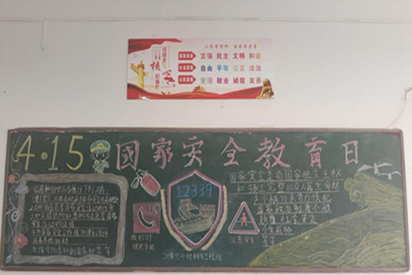 公司各班级积极召开国家安全教育日主题班会,向同学们提出了加强对国土安全、网络安全、消防安全等方面学习要求,切实提高了同学们的安全防范意识;充分利用LED显示屏宣传国家安全知识,标语为“树牢总体国家安全观,感悟新时代国家安全成就,为迎接党的二十大胜利召开营造良好氛围”;21高分子材料与工程班全体班级员工还共同出谋划策,集体努力制作出“4.15国家安全教育日”主题黑板报、宣传海报进行广泛宣传。