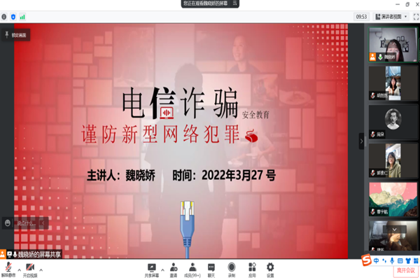 为了增强自我保护意识,提高对诈骗术的处理能力,以及学会利用法律手段维护自身的利益。3月27日晚,20级环境工程专业召开防范电信诈骗安全教育线上主题班会。院领导和全体辅导员参加线上主题班会的观摩。