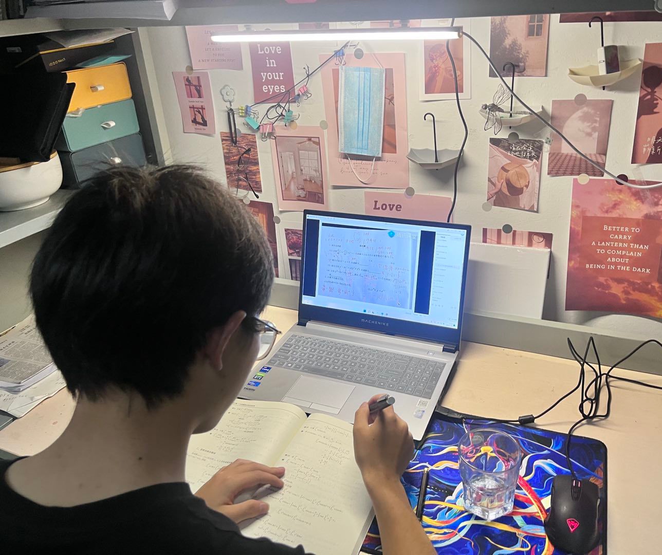 为减少干扰,同学们也将桌面也整理的非常干净整洁。21应用化学1班的李守鑫同学说“在寝室上网课,我们要自己营造学习氛围,打扫书桌,收起娱乐设施,既能使自己专注于课堂,又能有效屏蔽外界干扰。”