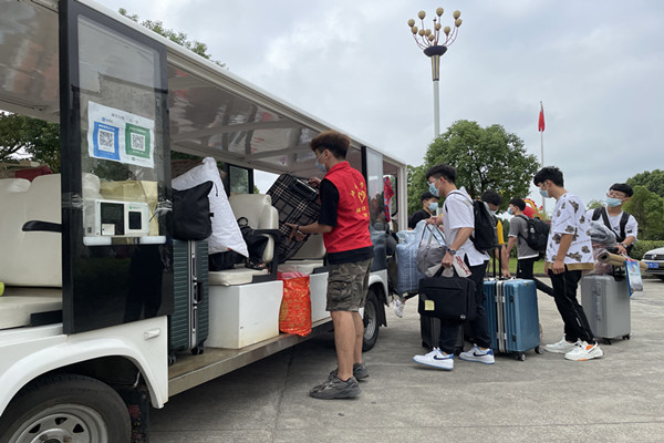 公司迎新工作人员已做好各项准备,全天有工作人员轮流上岗,责任到位,全天候值班,以周全的服务确保新同学安全、方便的报到和住宿。大量志愿者协助新生做好报到工作。新生来校先由员工志愿者在南大门迎接并带领新生到报名处报道登记,然后员工志愿者将员工行李打包装车并带领新生乘车到各自楼层,各新生楼层志愿者协助新生入住。