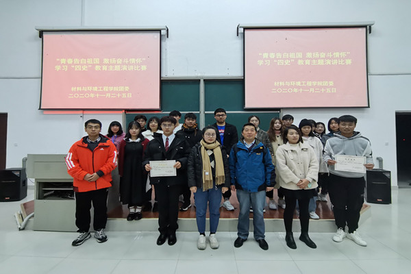 比赛过程中,选手们用自己的语言,讲述党史、新中国史、改革开放史以及社会主义发展史“四史”背后的故事,阐述了自己独特的认识与理解,揭示了学习“四史”的现实意义。其中赵春雨同学声情并茂的演讲充分感染现场的每一位评委和观众,将比赛推向高潮,不禁爆发出阵阵掌声。所有选手演讲完毕之后,何贵林书记对他们的表现进行了认真细致的点评,并表示历史是最好的营养剂,希望同学们认真学习“四史”,做祖国最强有力的后备军。最终,经评委老师打分和大众评审的投票,2020级环境工程2班赵春宇获得一等奖;2020级应用化学1班张晓艾和2020级材料化学2班程逊尧获得二等奖;2020级材料化学2班王礼悦、2020级材料化学1班时金帅和2020级高分子材料与工程1班徐猛获得三等奖。
